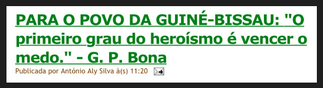 Nunca nada de pessoal contra ninguém e muito menos divulgo correspondências trocadas – deus me livre. E ninguém mo fará. Não. O tempo da verdade chega sempre, pelo que a honra tem que ser paciente. Nunca serei uma vítima. E é isso que, afinal de contas, algumas pessoas não me perdoam. Andarei sempre de cabeça levantada, em Bissau ou em qualquer parte do mundo. AAS António Aly Silva NOVOS CONTACTOS » antonio.alysilva@outlook.com/antonio.alysilva@gmail.com
