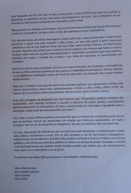 O STJ devolveu o pedido de impugnação apresentado pelo PAIGC à CNE, constituindo-se isso como a primeira vitória do Candidato DSP, já que a...
